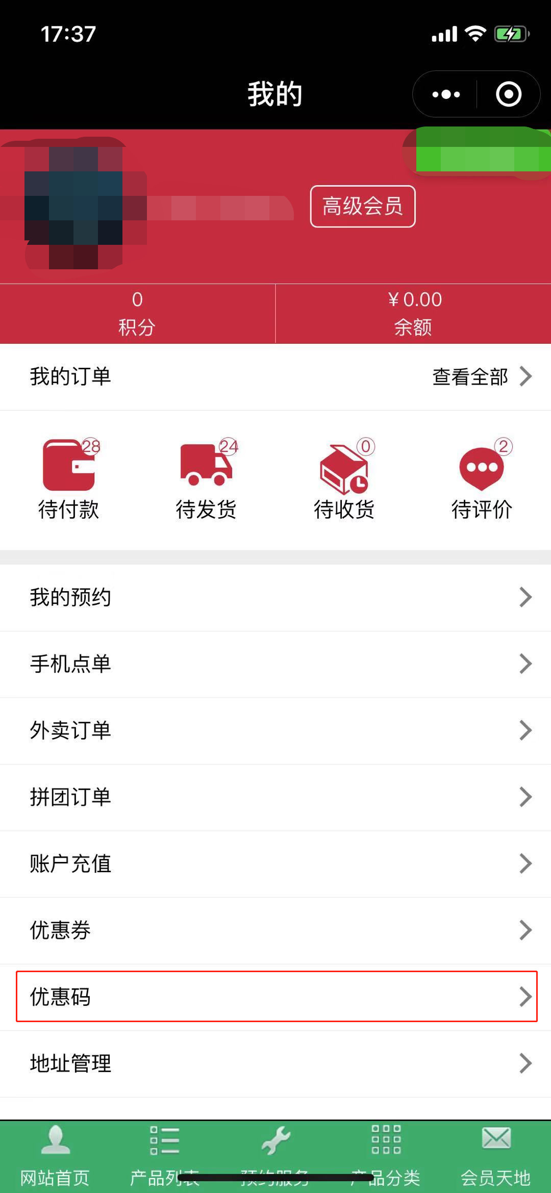 3.Pc端可在个人中心查看优惠码,如图所示: